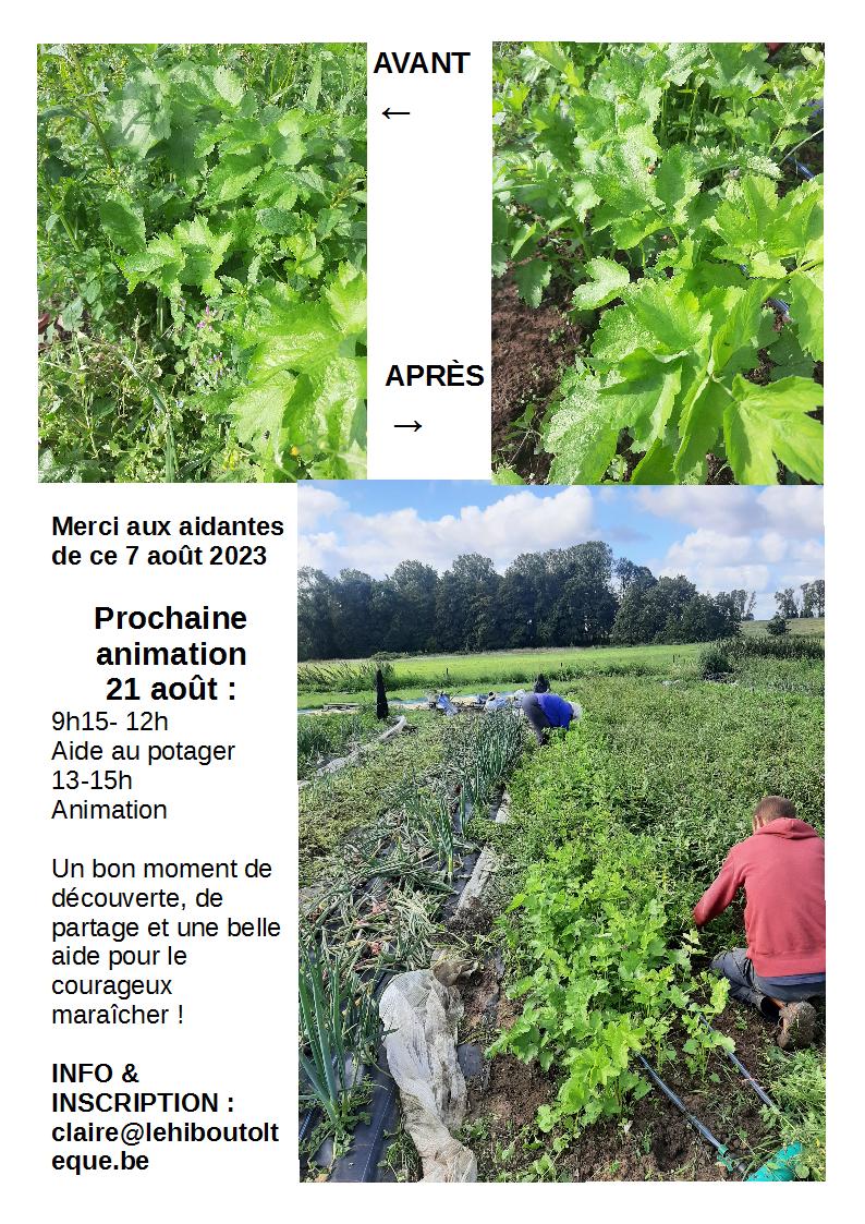 Contact: Adriano Boremanse (maraicher, jardinier) 0474 57 18 17 adriano.boremanse@protonmail.com