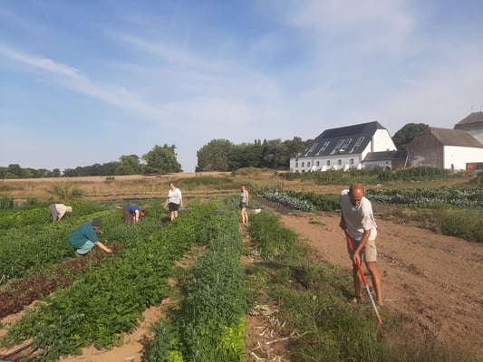 Tous les mardis matins de 9h30 à 12h nous organisons un chantier participatif au potager: La matinée des aidants! Y prennent part les personnes suivies par le beau projet Terre EnVie http://www.interactionsasbl.be/terre-envie/ dans le cadre de l'accueil social à la ferme ainsi que toutes les personnes désireuses de passer un moment au grand air, les mains dans la terre pour venir aider Adriano le maraîcher.